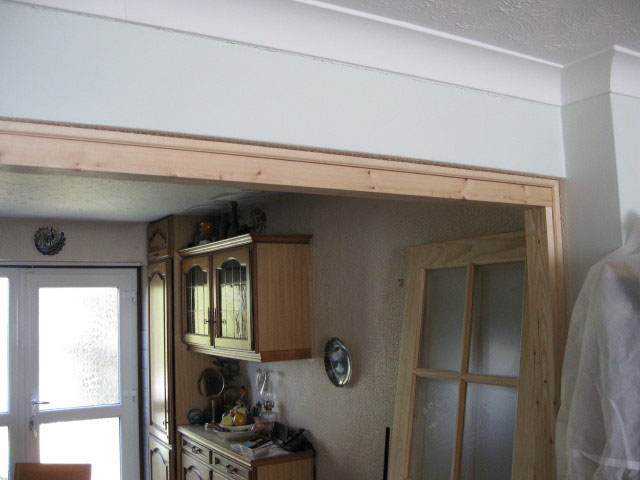 These doors were fitted between a kitchen and lounge, these ‘8 light’ doors let in plenty of light whilst keeping kitchen odours out of the living room. The head –that’s the top part of the frame, had to be thicker than the sides because of the opening height, also the opening was not square, I was able to loose this discrepancy, allowing the doors to be hung square.