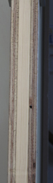 Having decided to replace an internal door it was important to me that the new door reflect thoughts I have about the house I live in. This house is 1970s ex council, small and not as solid as earlier models. The ground floor of the house had been altered and is now open plan. This led to thinking about the construction of the whole. How some features seem a little mean, like the cavity walls that were built just slightly narrower than would accommodate insulation. See this in contrast to the staircase, which is solid and generous. The internal doors however are merely functional and carry an overall feeling of lack of care, of being unnoticed. These doors are mass produced, inexpensive and, although adequate, perhaps easily damaged. This is evidenced by one door upstairs that shows the mark of a boot. I suspect a little violence in its history.