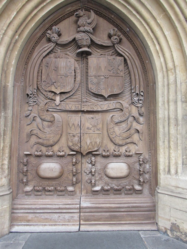 Being a 36 inch wide door a replacement of similar design would be in the region of £1000. After removing the various bits attached to the door, a thorough sanding and finishing with 3 coats of light Oak Satin varnish the end result looks very presentable.