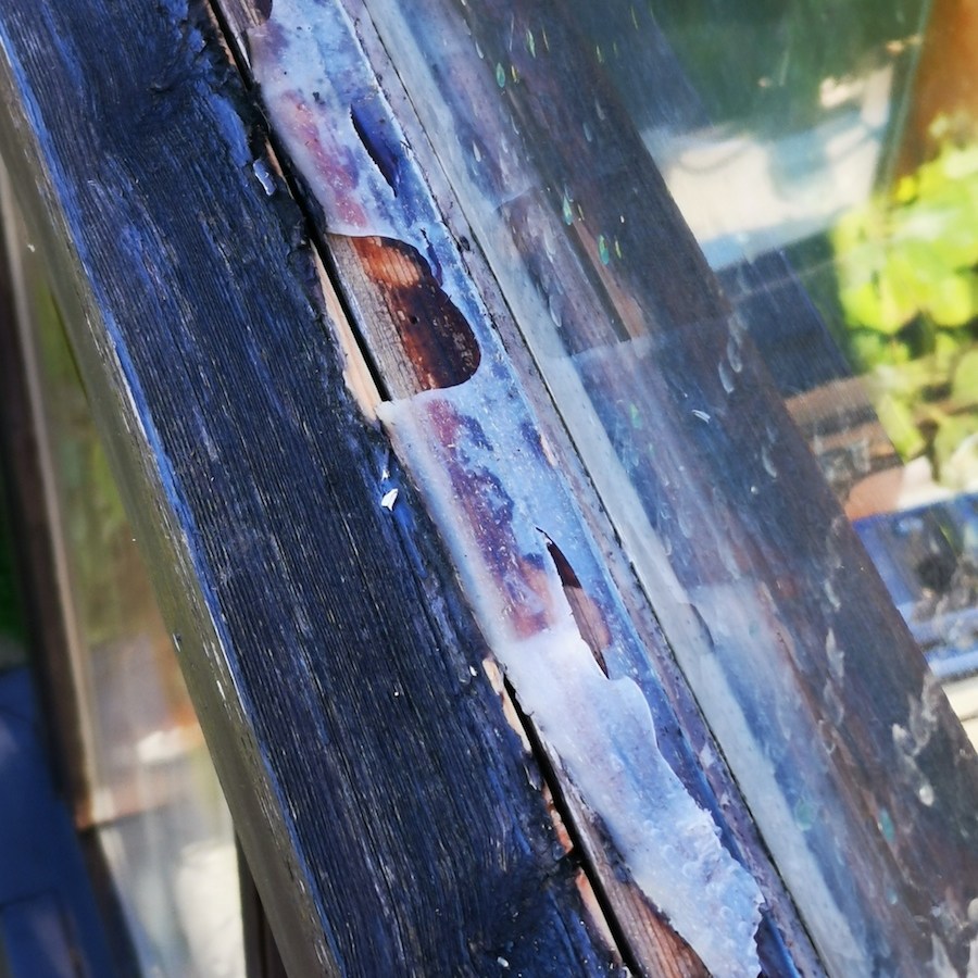 The glazing had not been installed with adequate sealants so the rain had penetrated behind the beading at the base of the glass and the result as you can see was extensive rot to the middle rail.